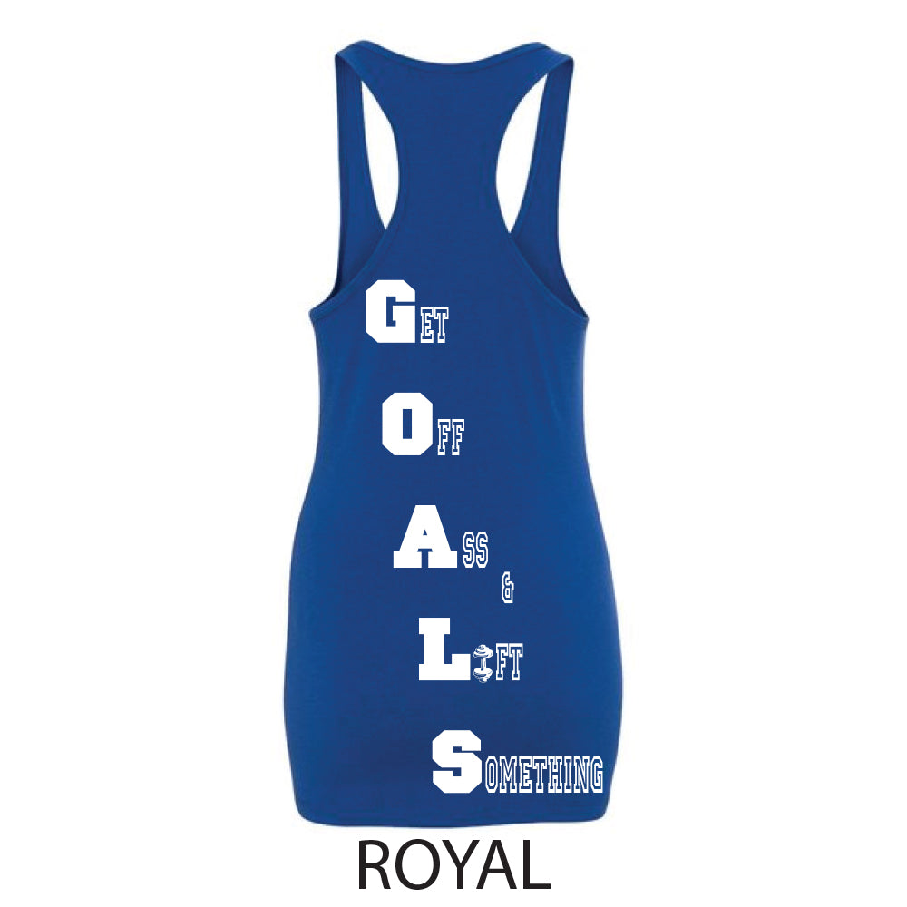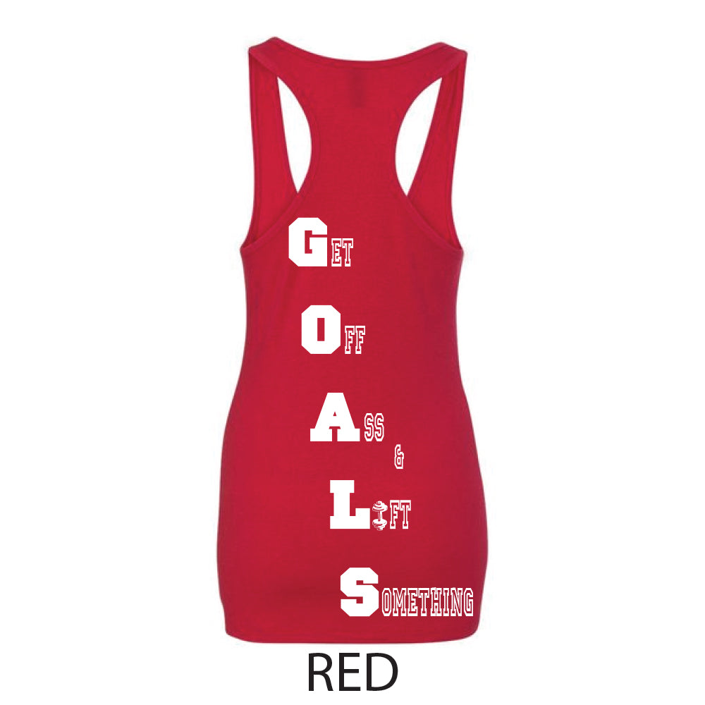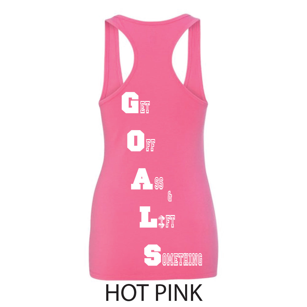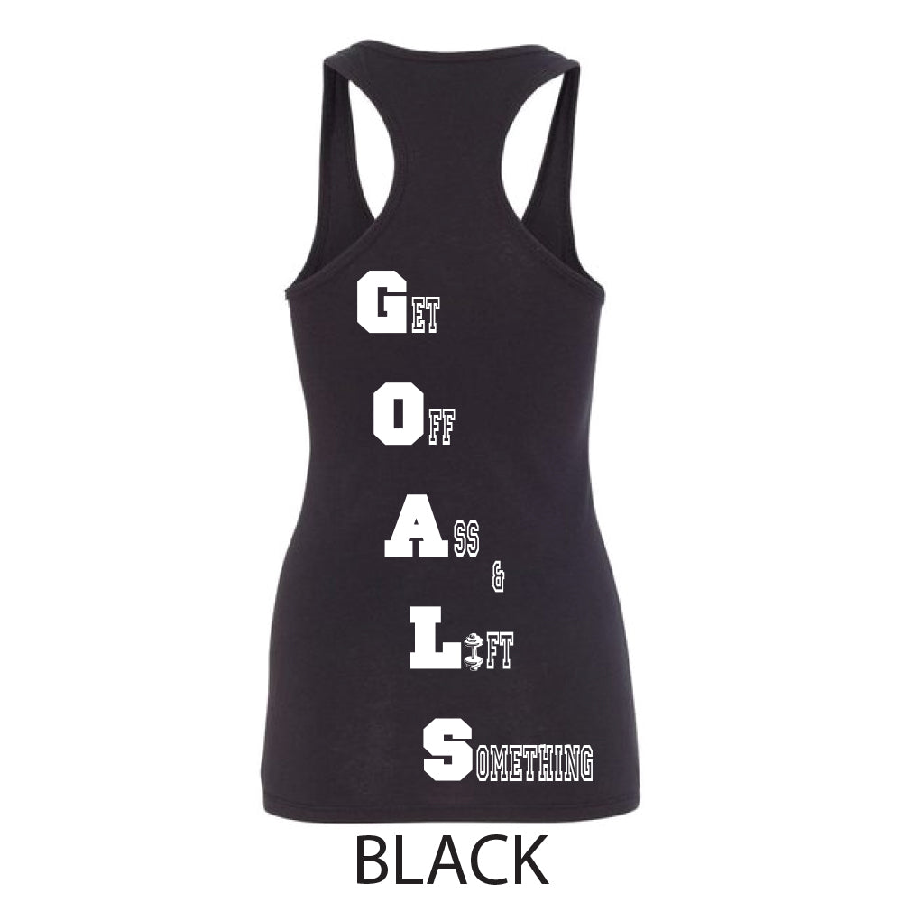 G.O.A.L.S. - GET OFF ASS & LIFT SOMETHING! Lift away anything that is preventing you from accomplishing your goals. The G.O.A.L.S. logo is our rendition of an explanation point, so with extreme passion set goals and Xecute with 100% certainty and put an Explanation Point on it!